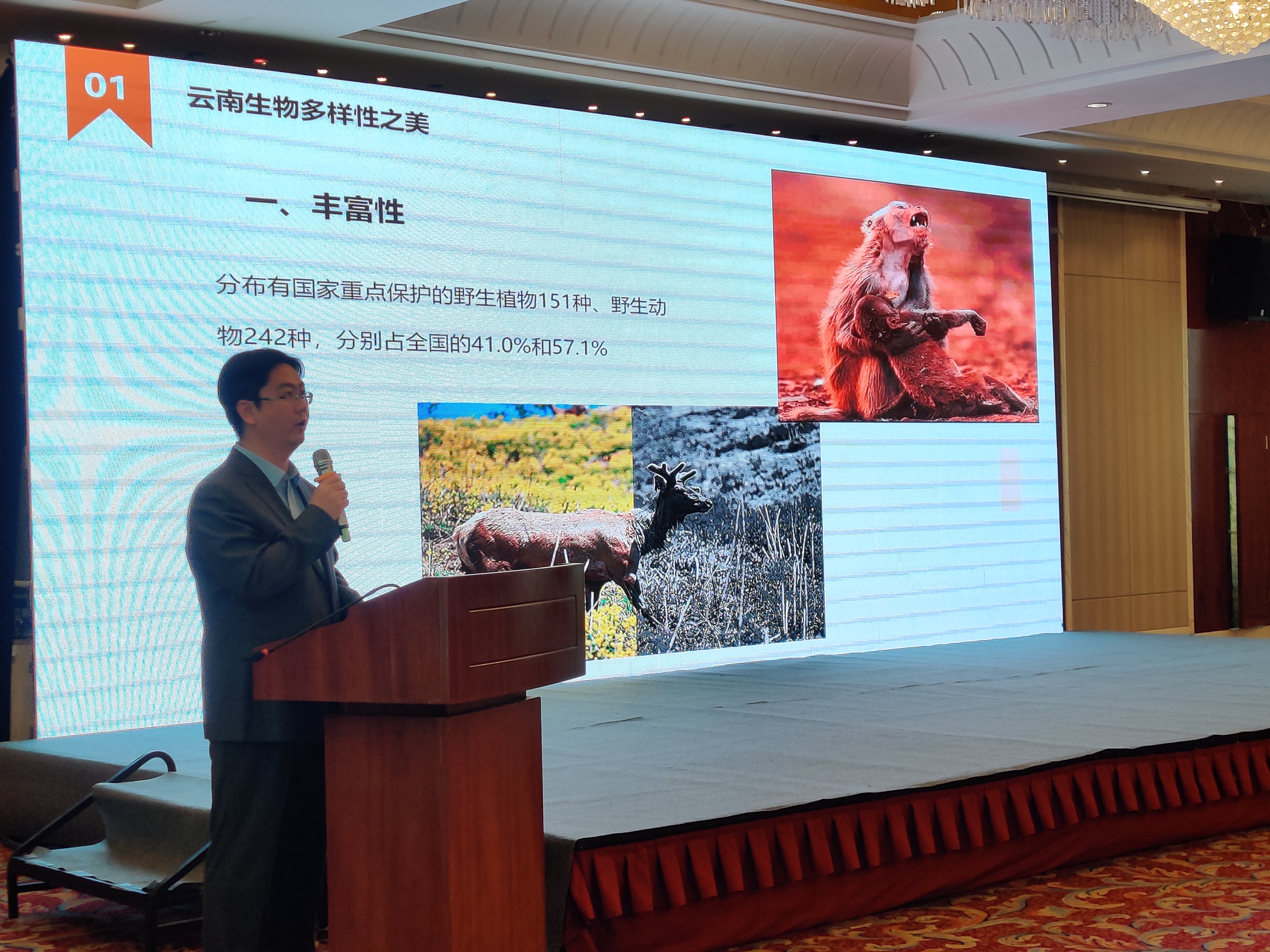 云南省生態(tài)環(huán)境廳副廳長普利鋒以云南生物多樣性為主題發(fā)表演講